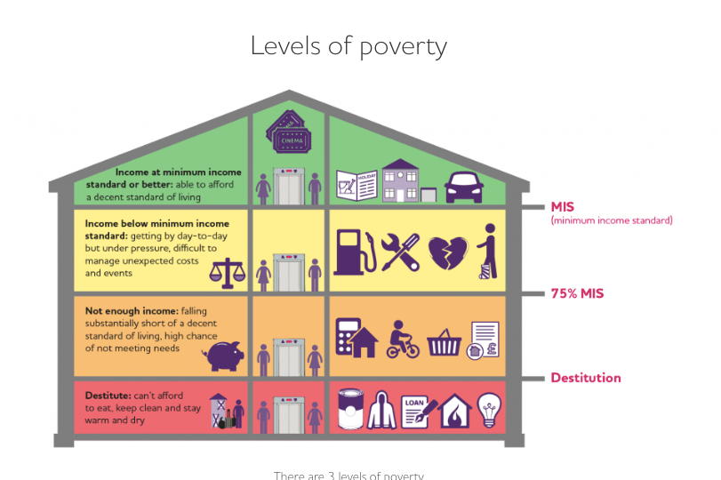 Firstly, poverty is not quite the same thing as having low income. People and families can have different fixed costs to contend with as well, like childcare, housing and costs associated with disability, as well as different levels of savings or assets to draw upon.