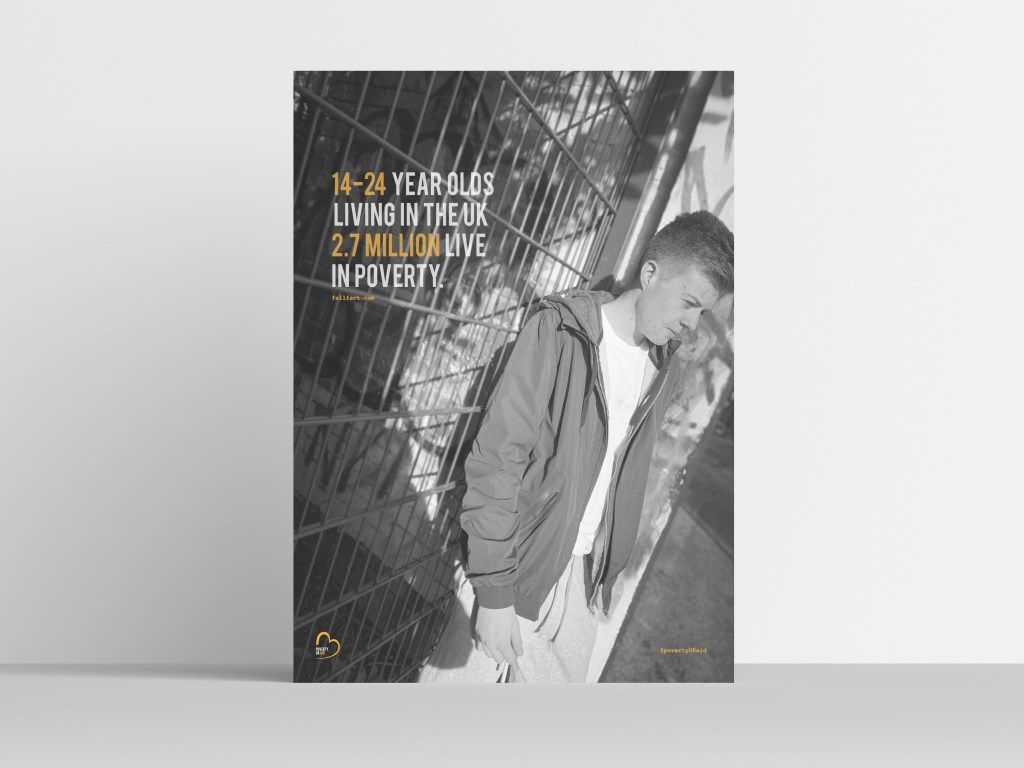 The key thing for this design was to make sure the logo and the type and all the elements were in the exact same place as the previous design. To do this, I had to copy and paste it from the previous design and align It in the exact same place. It was key to ensure there was enough space between the top of type and the width as the previous page, and the @povertyUKaid and the logo sat in the same place.