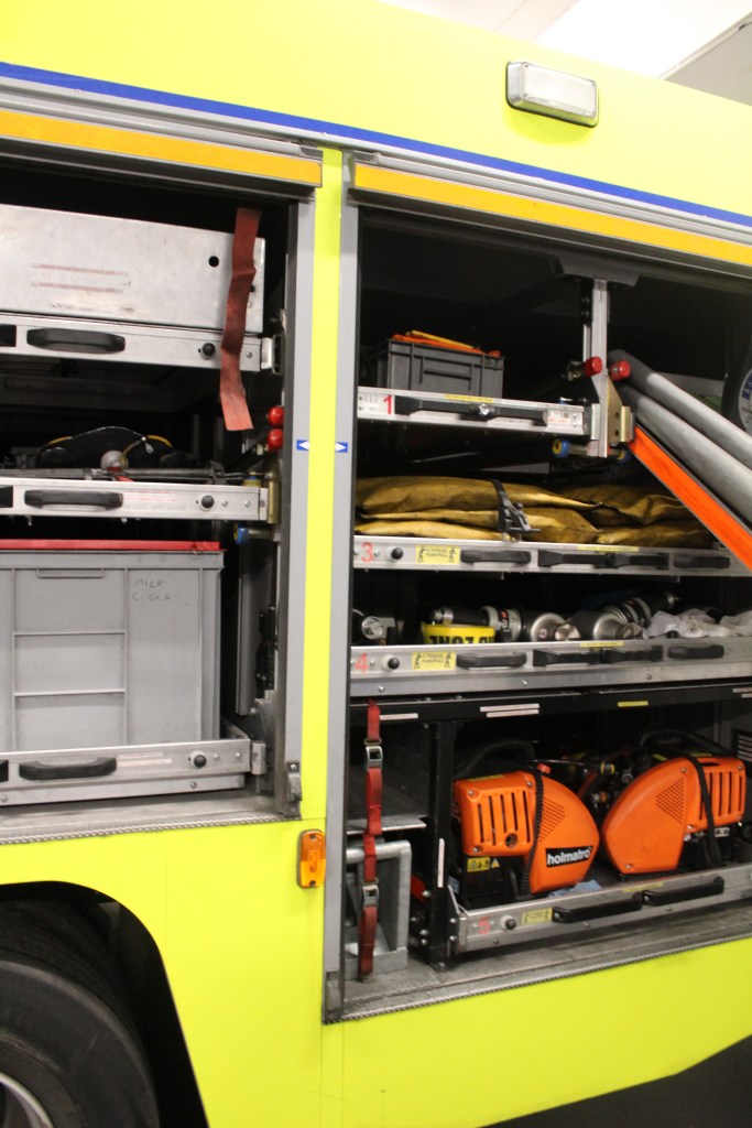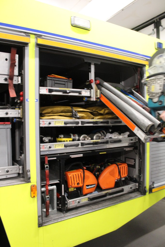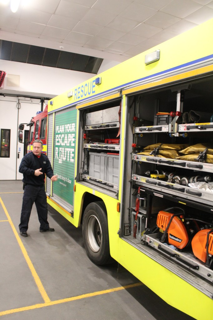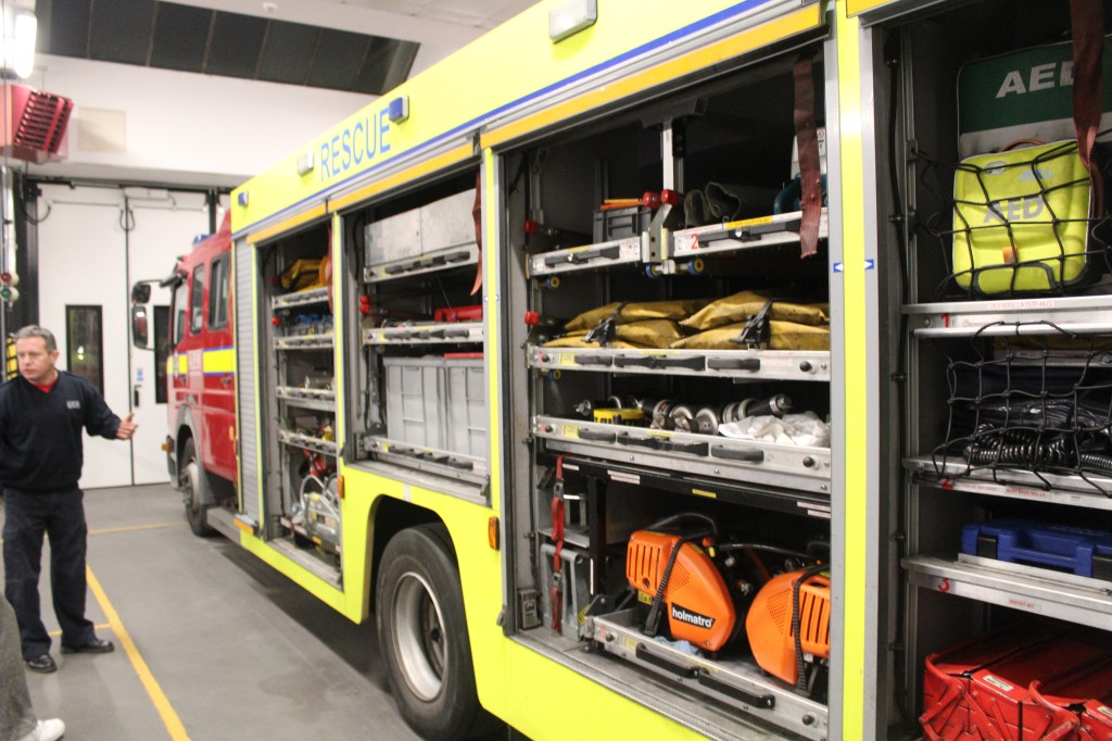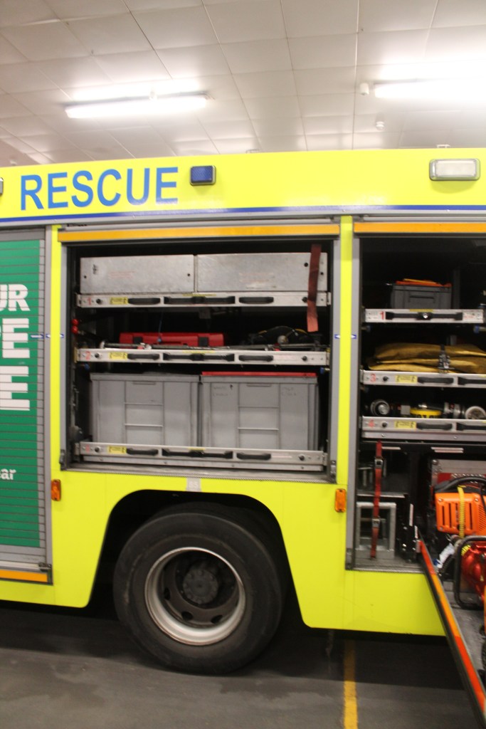 When I arrived at the fire station, my uncle allowed us to go through the red doors where they kept the fire engines. They have two fire engines that are used for different things which were explained in the blog previous. One was for fires, and the other is for maintenance emergencies therefore they both have alternative equipment depending on the matter.