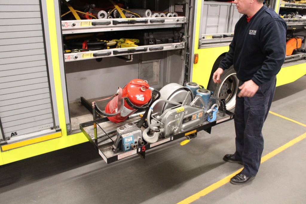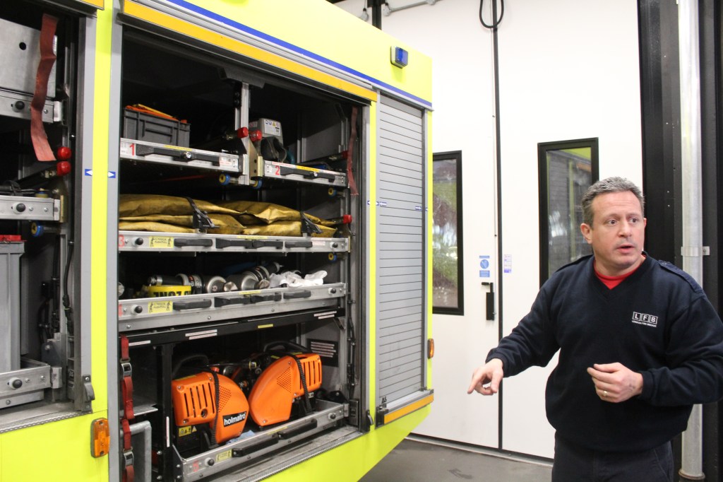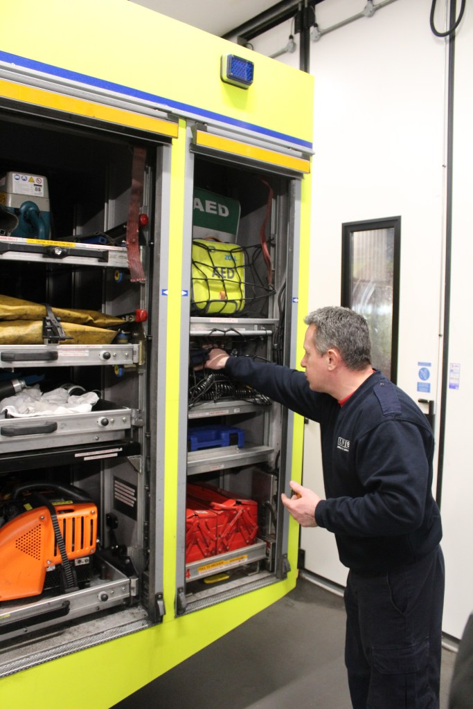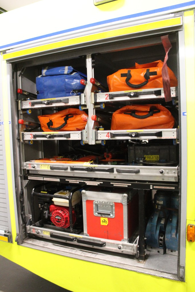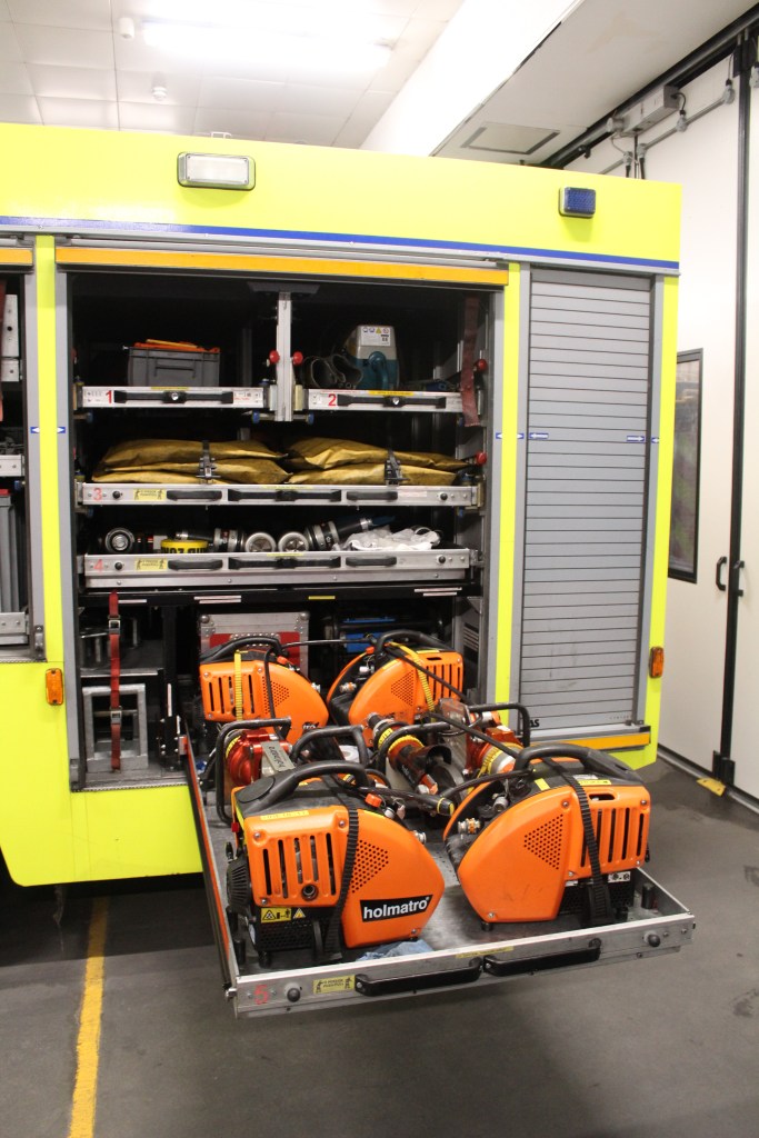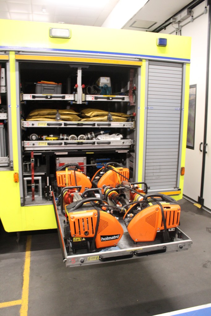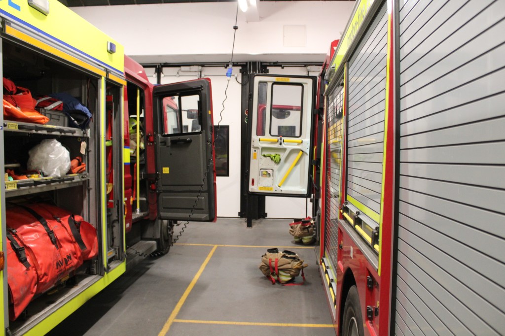 There are two trucks located within the station and others are kept at the back with BA equipment on them. (breathing apparatus) You have a fire truck, and a rescue truck. Rescue truck is used for RTA (rescue truck accidents) where as the fire incidents focus on obviously fire issues.