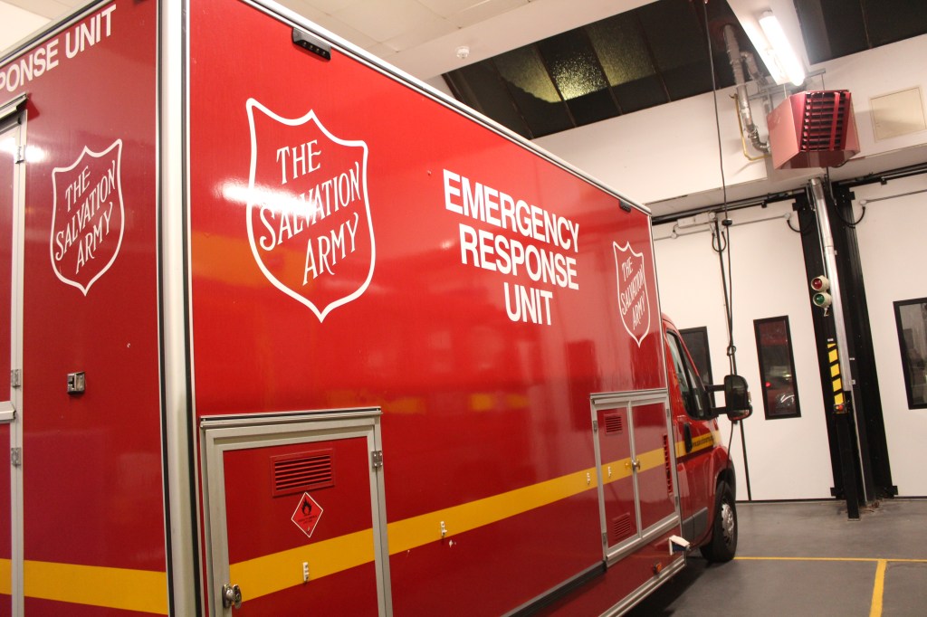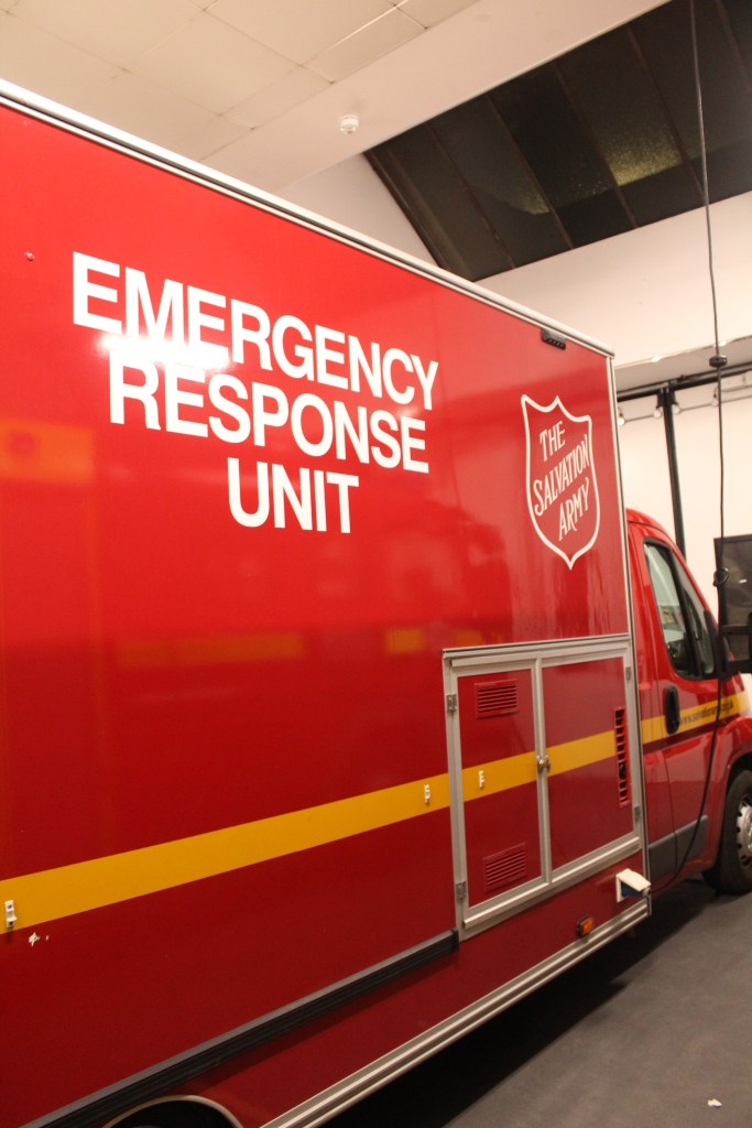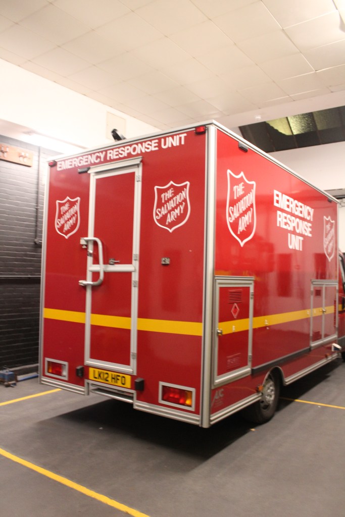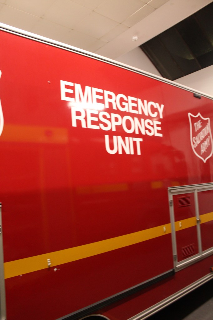 One of the imagery displayed is a service that helps the fire fighters when they are on calls. This red truck goes around providing coffee and supplies for the fire service.