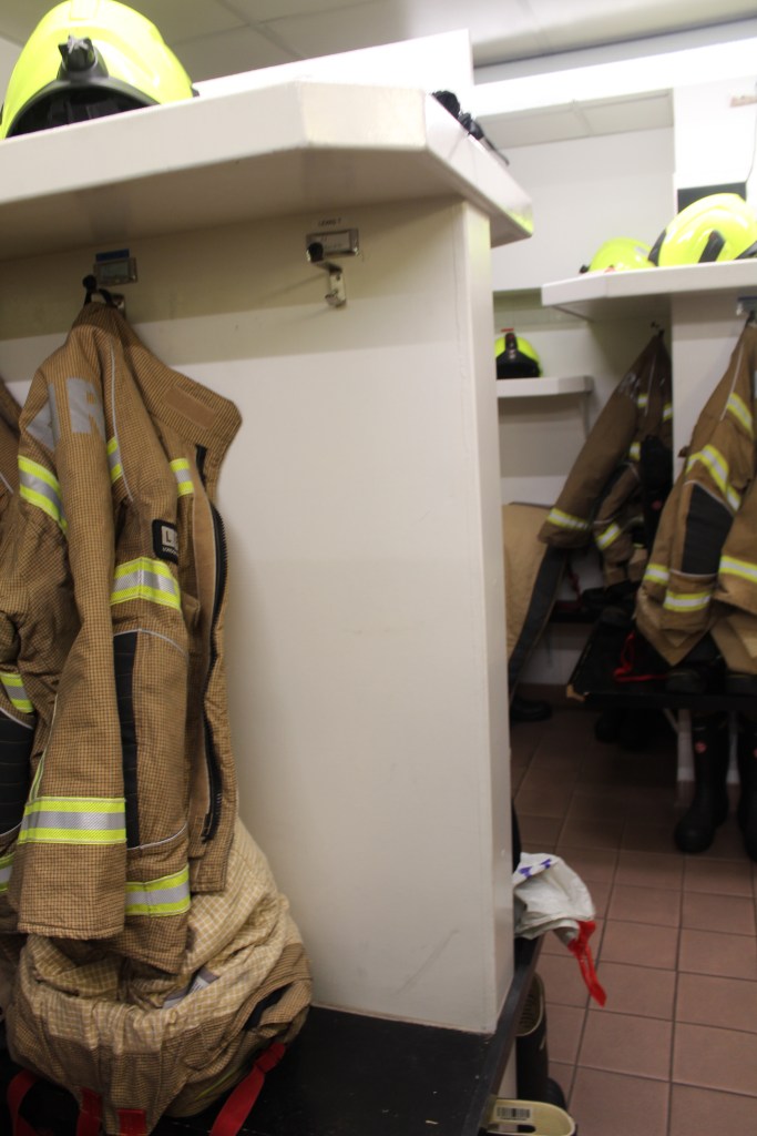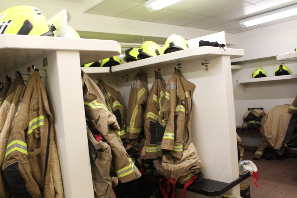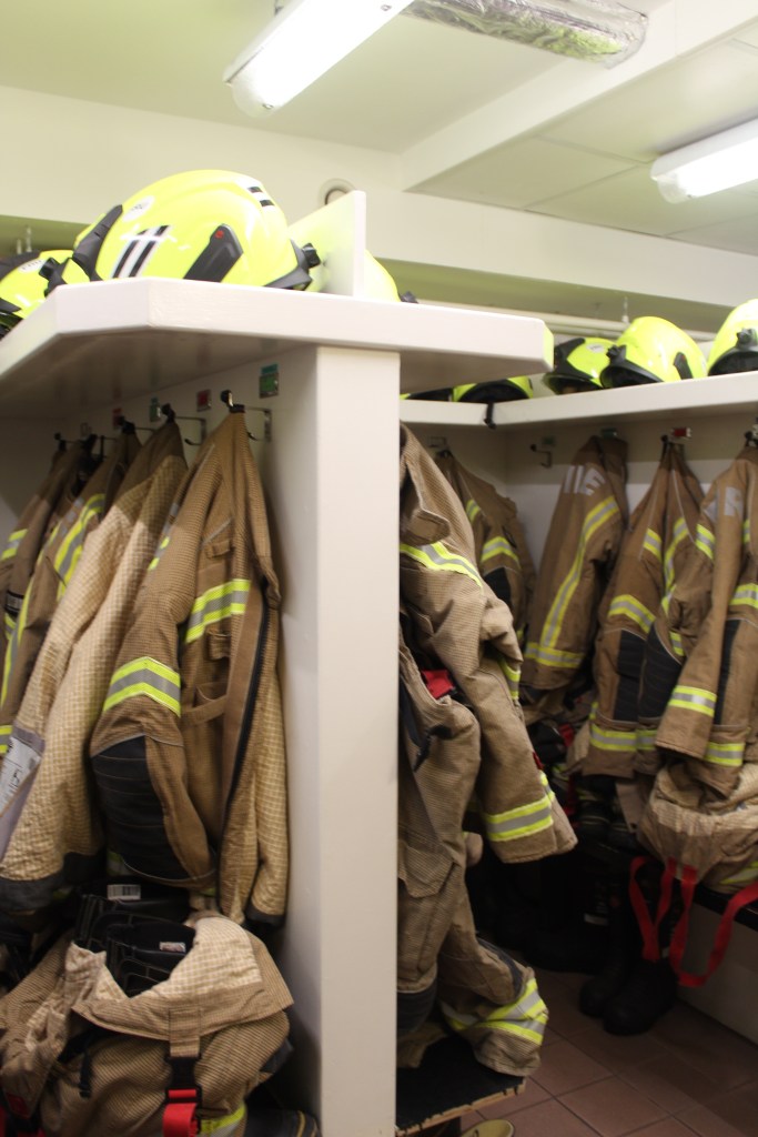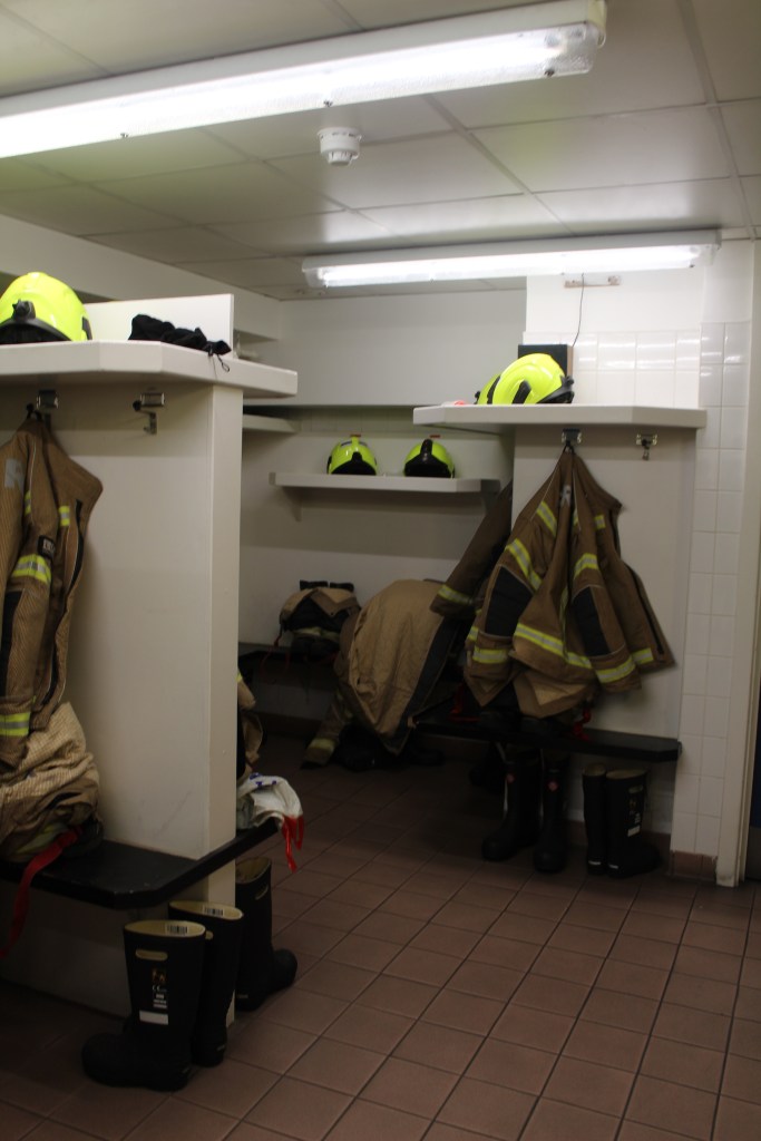 There is not a large amount of imagery from this section but enough to get an understanding of what it’s like. Within the images taken, there are some of the uniform racks, which all have names above them where the fire suits sit. You have the night shift rooms, where all the workers sleep, they cannot wear eye masks or ear plugs for obvious reasons. The one thing that was interesting that I did not know before that fire fighters have to do at least 1 hour of gym a day and therefore this is displayed within the photographs as I thought it would be interesting to capture. There is also images of the lecture room located near the cafe.