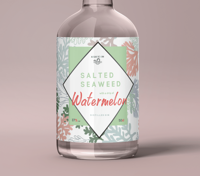 Here I thought would be a great place to show case the final ever logo. It took me a while to end up here but I think changing the bottle the style and the way I wanted to showcase this brand played a big role in the process of this design. I linked the pattern background within the design more as it became more interesting and make it stand out as a logo. Each element of the logo plays a part int telling the story however they connect together well without being separate. I decided to add the vol and to CL outside the diamond as I felt there was way to much going on within the diamond. I added the aquatic gin logo centre of the diamond at the top of the it making the rest of the type sit in within. If you look closely you will see its now a distilled gin as I did a lot of research to understand whether or not that this should be a dry gin or distilled gin. The thing removed from this is the fact its from Australia as I was going to add this onto the back. Reason being there is a lot of information being displayed within this gin, and some gins have the place its located from on the front others have it on the back there is no rule therefore I decided to add it on the back. I think the design fits with what I want to portray and I think it links with the pastel theme and the beachy vibe my brand is trying to portray.