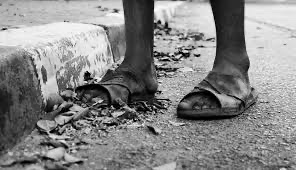 I chose this one because unlike the others it does not focus just on the persons face and appearance. this photo indicates no person but their feet. They are walking along the road (that’s quite messy and not clean) the fact that they are no trainers that they are sandals indicate it’s a hot country, maybe like Africa.. one of his feet is hanging out the shoe making it difficult to keep his foot in place. This shows you can portray poverty in other ways not just the face or person.