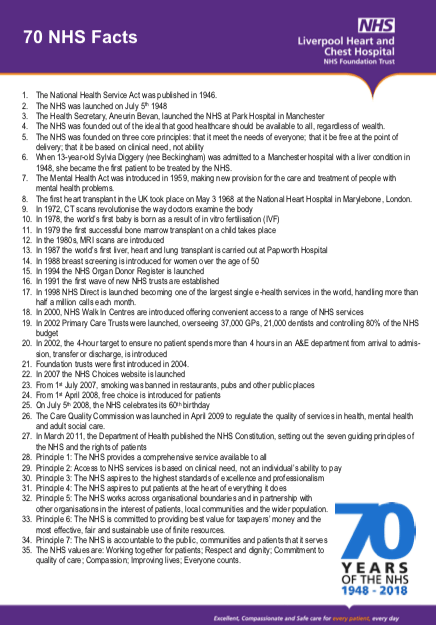 I actually found a PDF that provided so much information about the NHS therefore added it here. Within this PDF it states the history of the NHS, and a variety of facts about the general information surrounding the NHS.