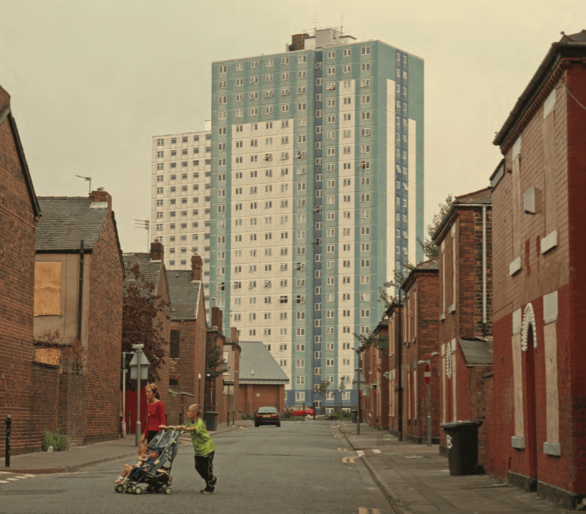 The photo that shocked me the most was this one below. The angel of this shot is really good, I think it showcases the surroundings well. but again why a tower block? you are giving the impression that if you live on a council estate you are automatically in poverty, which isn’t the case there are families in houses who struggle with poverty. The young boys are behind a bar which to me indicates they are trapped and not free which may be true to poverty issues but aren’t you separating these boys from everyone else? People in poverty aren’t scary people, disgusting people, they are normal people who just need a bit of help. I think the emotions within the children showcase poverty well, I just do not think you need an estate to show that and comes across very stereotypical as this is the second tower block image they have used.